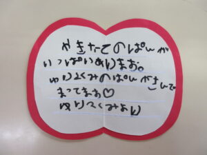 さくらんぼくらぶのお友だち宛てにゆり2組のお友だちから「パン屋さんに来てね」というかわいい招待状が届きました😊🍞🥐