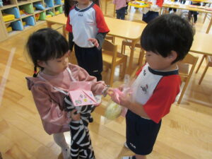 さっそくお財布を作ってゆり2組のパン屋さんにお買い物に行きましたよ!