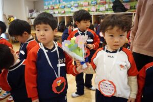 ひまわり組さんからはマリオの写真立て、ゆり・たんぽぽ組さんからは花束のプレゼントをもらいました💕