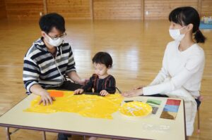 好きな色のテープを貼って自分だけの衣装づくりを楽しんでいました😊