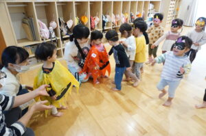 ハロウィン遊びを楽しんでにこにこでお家の人と帰っていました😊