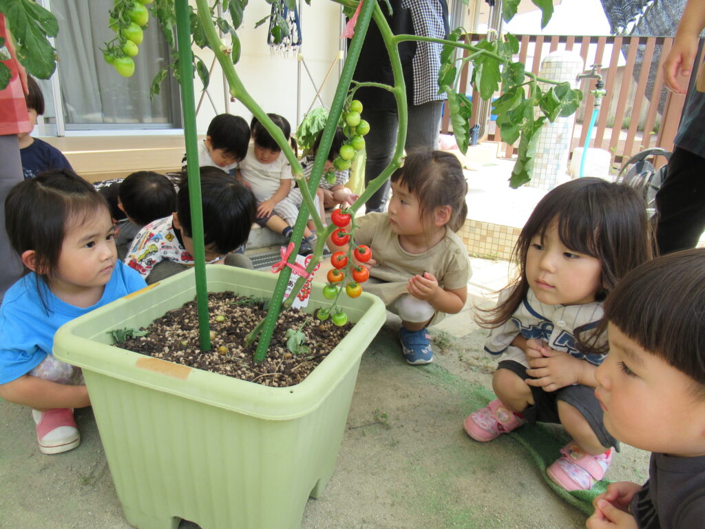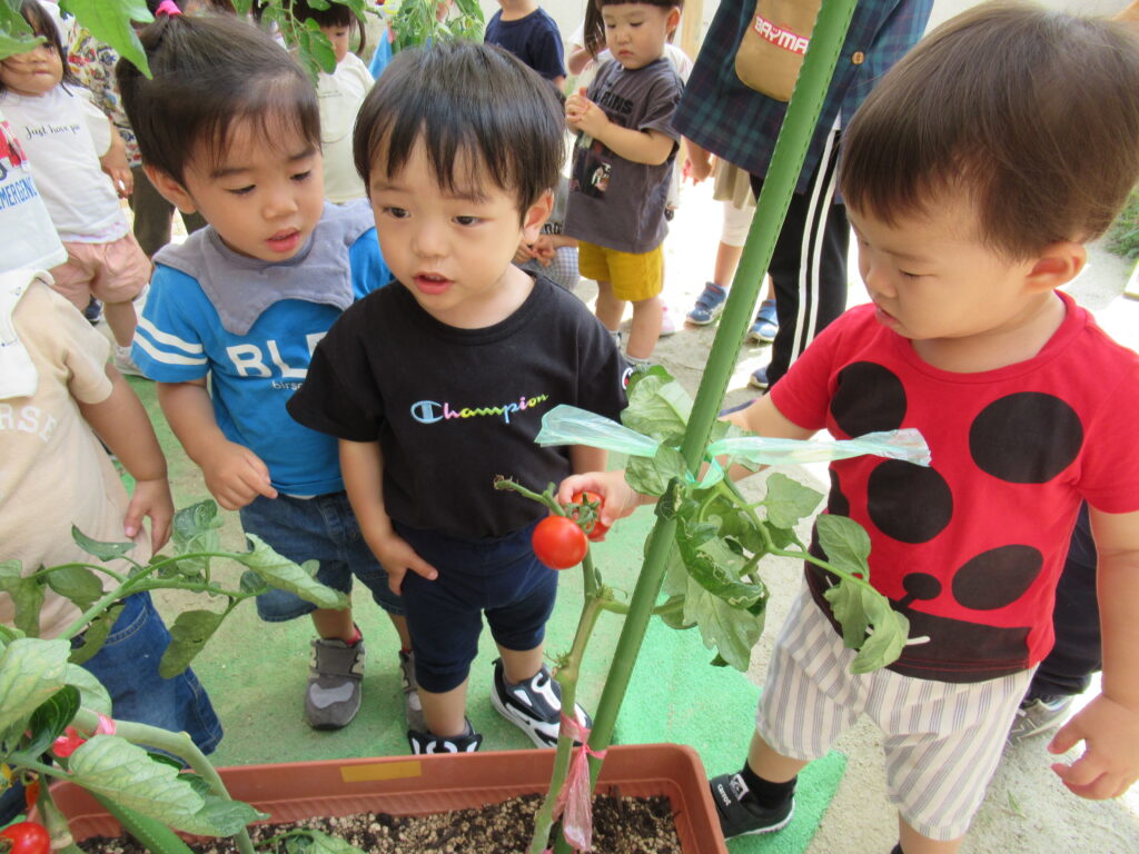 トマトの収穫🍅ナーサリクラス😊