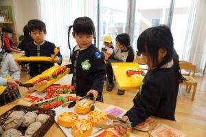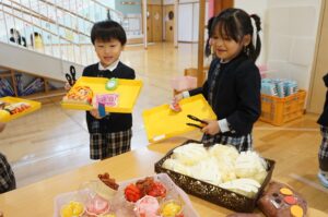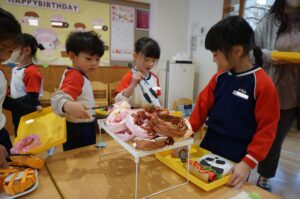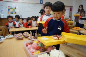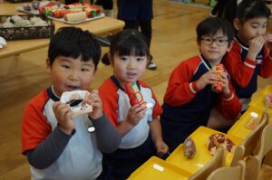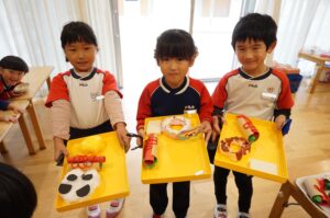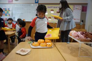 さくら組さんやひまわり組さんがゆり2組のパン屋さんにお買い物に行きました😊