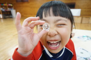 CDに光を当てて虹を作ったり、クリスタルボール越しに物を見たりして楽しみました💗