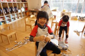道具の使い方や素材の特徴が分かってきて、製作がどんどん上手になってきたひまわり組さん😊