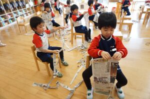 新聞紙遊びをしていたひまわり1組さん