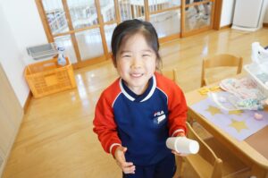 「見て見て~!」と呼ばれて振り返ってみると・・・紙コップで作ったマラカスが出来ていました😆♬