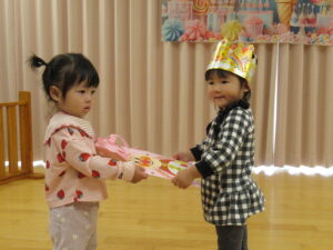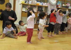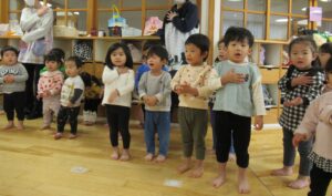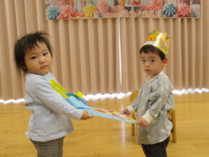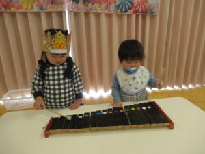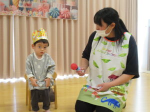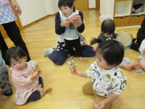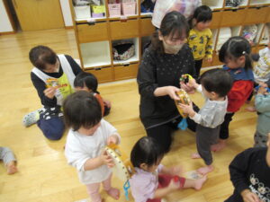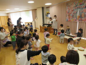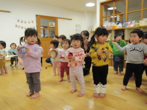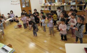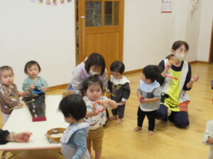 みんなで楽しく楽器を鳴らして歌を歌いました。