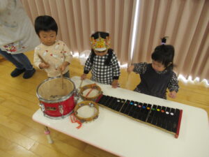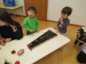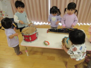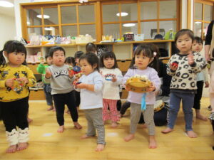やまのおんがくか・おもちゃのチャチャチャなど楽器を鳴らすと