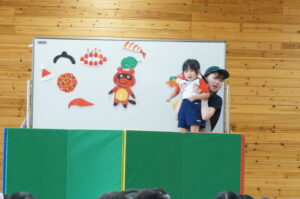 今月の先生たちの出し物は「のせてピッタリ!のせて屋さん」です!