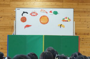 今月の先生たちの出し物は「のせてピッタリ!のせて屋さん」です!