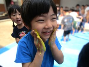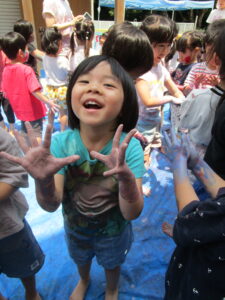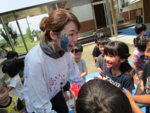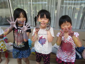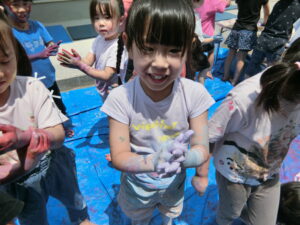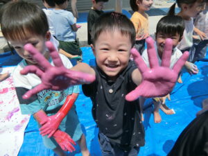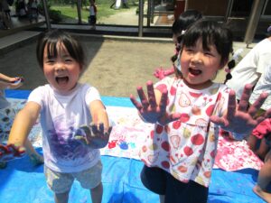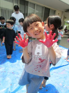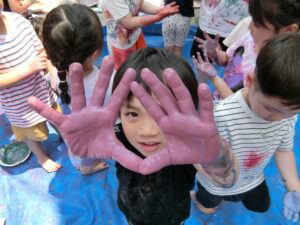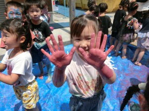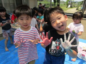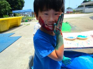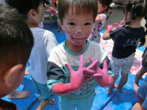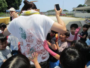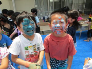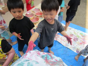 8日にひまわり組さんがボディペインティングをしました😊