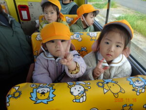 バスに乗る事を楽しみにしていたお友達、黄色バスに乗れて
