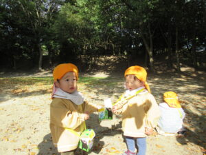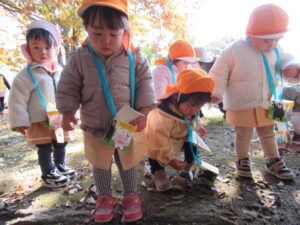 お散歩バックを持ってどんぐり拾いに出発‼😊🍂🍁