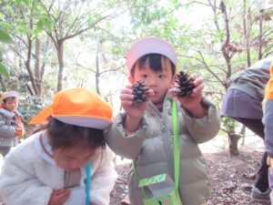 どんぐりと松ぼっくりを持って帰りました。😊🍁🍂🚌