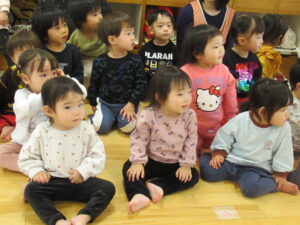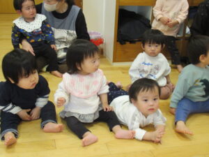園ではひな祭り行事として、0・1・2歳児のお友だちが