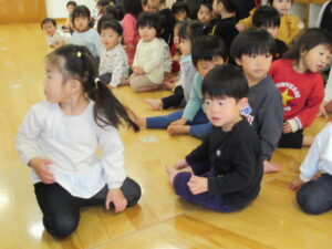 先生の読んでくれるおひな祭りのお話も楽しそうに