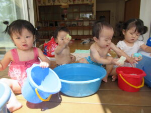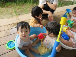 水の感触を楽しみながら、みんなで夏のひと時を