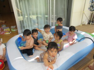 7月に入り、プール遊びが始まりました。😊
