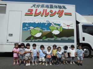 ユレルンダーがめぐみ幼稚園にやって来てくれました。😁✨まだ、お友だちが小さいのでユレルンダーの前で記念写真だけ撮らせてもらいました。😄すみれ1組(1歳児)