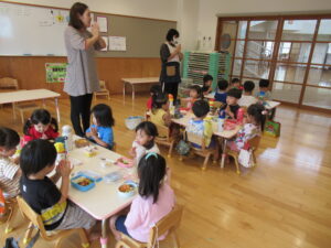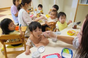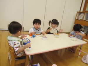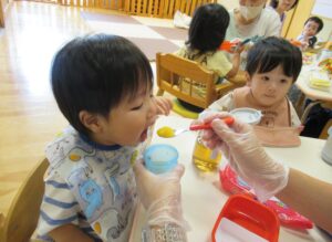 れんげ組さんのお友だちが早食い競争に挑戦!
