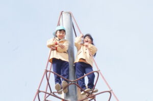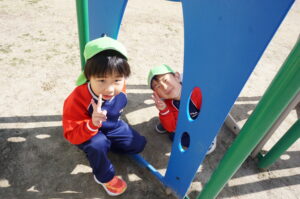 「せんせい、やっほー!!」とあっという間にてっぺんまで登っていました✨高いところもへっちゃらです!!