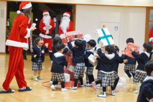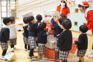 毎日色んなことに頑張っていためぐみ幼稚園のお友だちのところにもサンタさんが来てくれました😊🎄