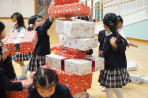 そーっとそーっとプレゼントを積み重ねていた子どもたち!!