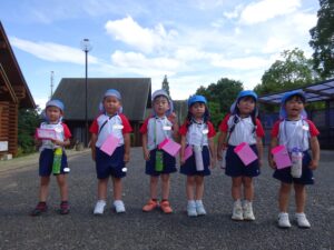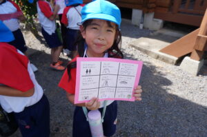カードを首に下げてスタンプラリーの説明を聞いたらスタンプラリーのスタートです!
