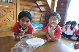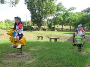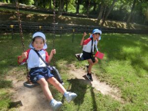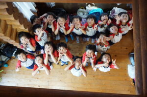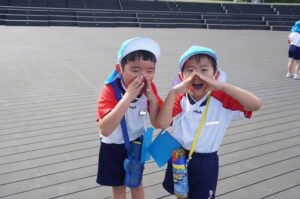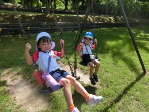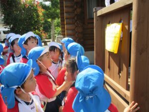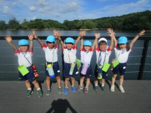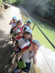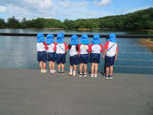 池に向かって「やっほー」というと反対側にいるお友だちも「やっほー」と答えてくれて