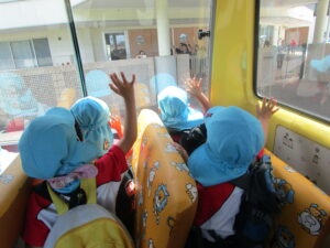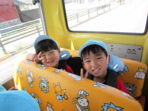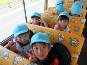 バスの中でも元気いっぱいな子どもたち!「なんのお菓子買おうかなぁ」とお買いもの体験の事で頭はいっぱいです😋💗