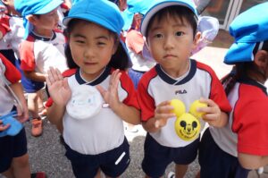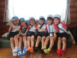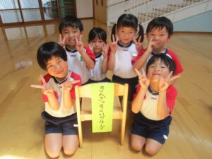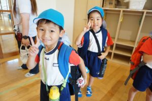 大きな荷物を持って元気に幼稚園に集合したさくら組さん😊!