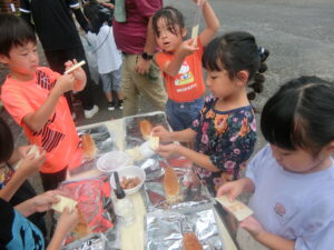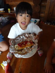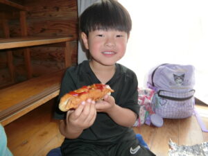 サマースクール2日目は朝食のホットドック作りからスタートです!