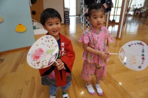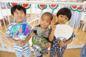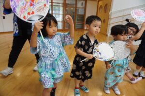子どもたちも甚平や私服で幼稚園に来て朝からウキウキしていました😊