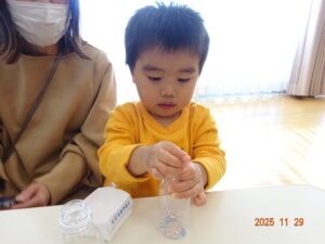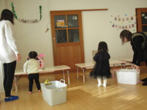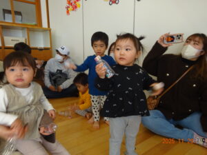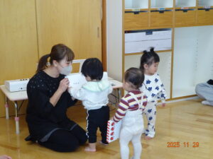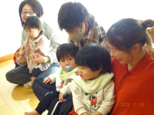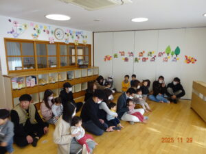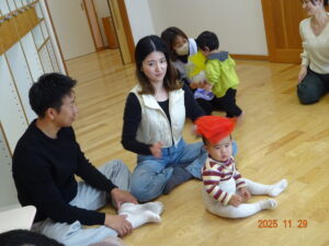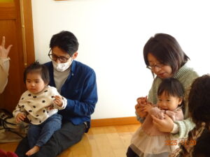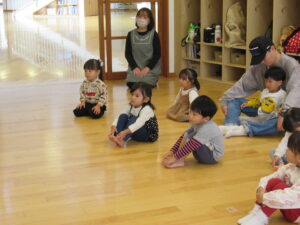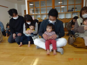 少し緊張ぎみでいつもと違いパパやママと一緒に始まりました。