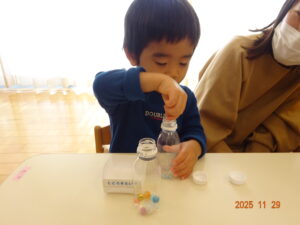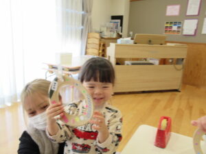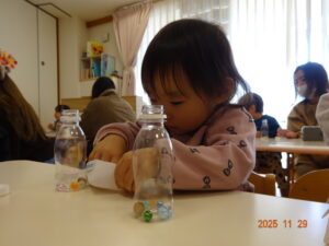ビーズを入れてシール貼りを楽しみました😊🪇
