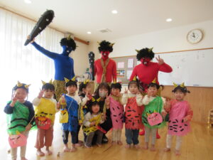 みんなの中にいる悪い鬼さんを退治できたれんげ組さん
